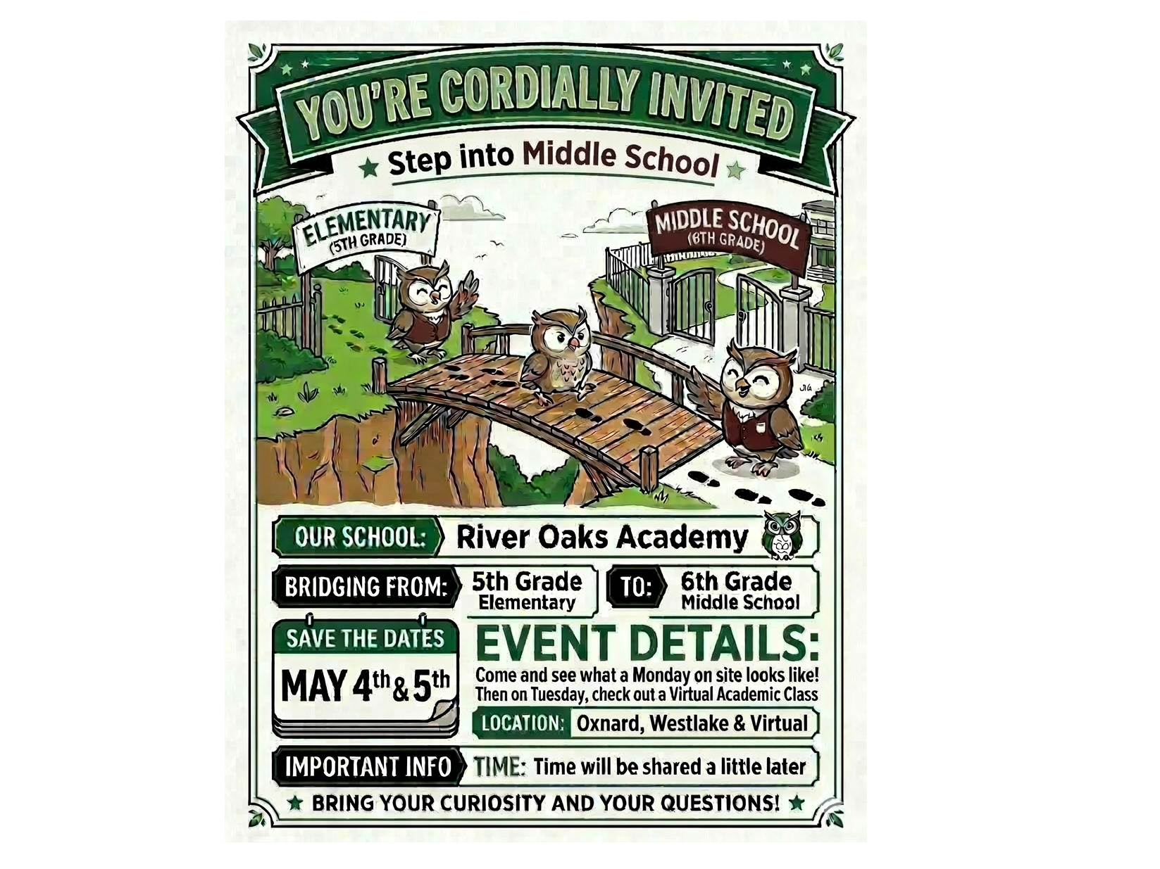 This two-day preview helps students explore middle school, experience different learning environments, and begin their transition from elementary to ROA middle school with confidence.