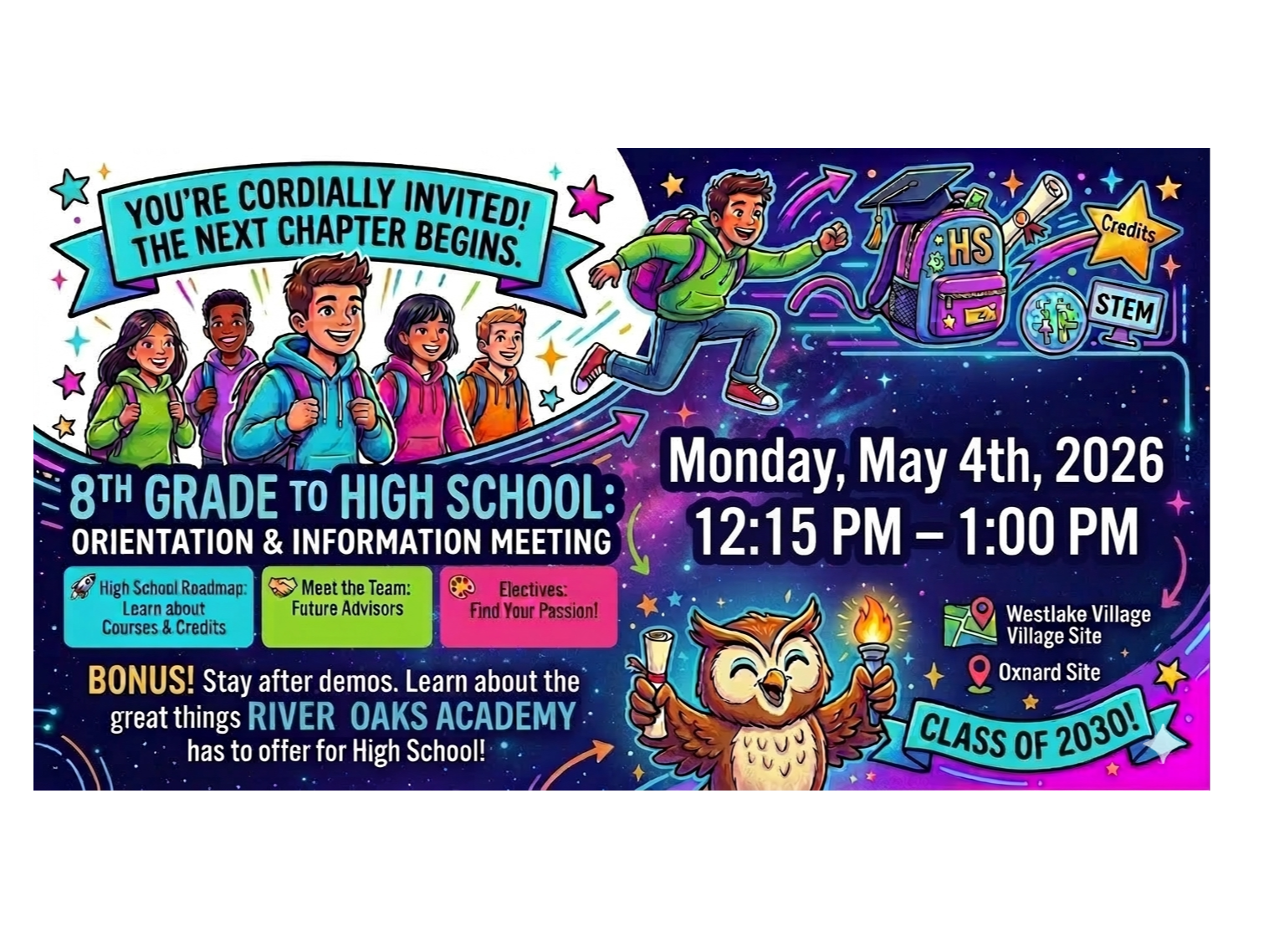 8th grade students and their parents/guardians are invited to attend High School Information Day as we prepare for the exciting transition to River Oaks High School.